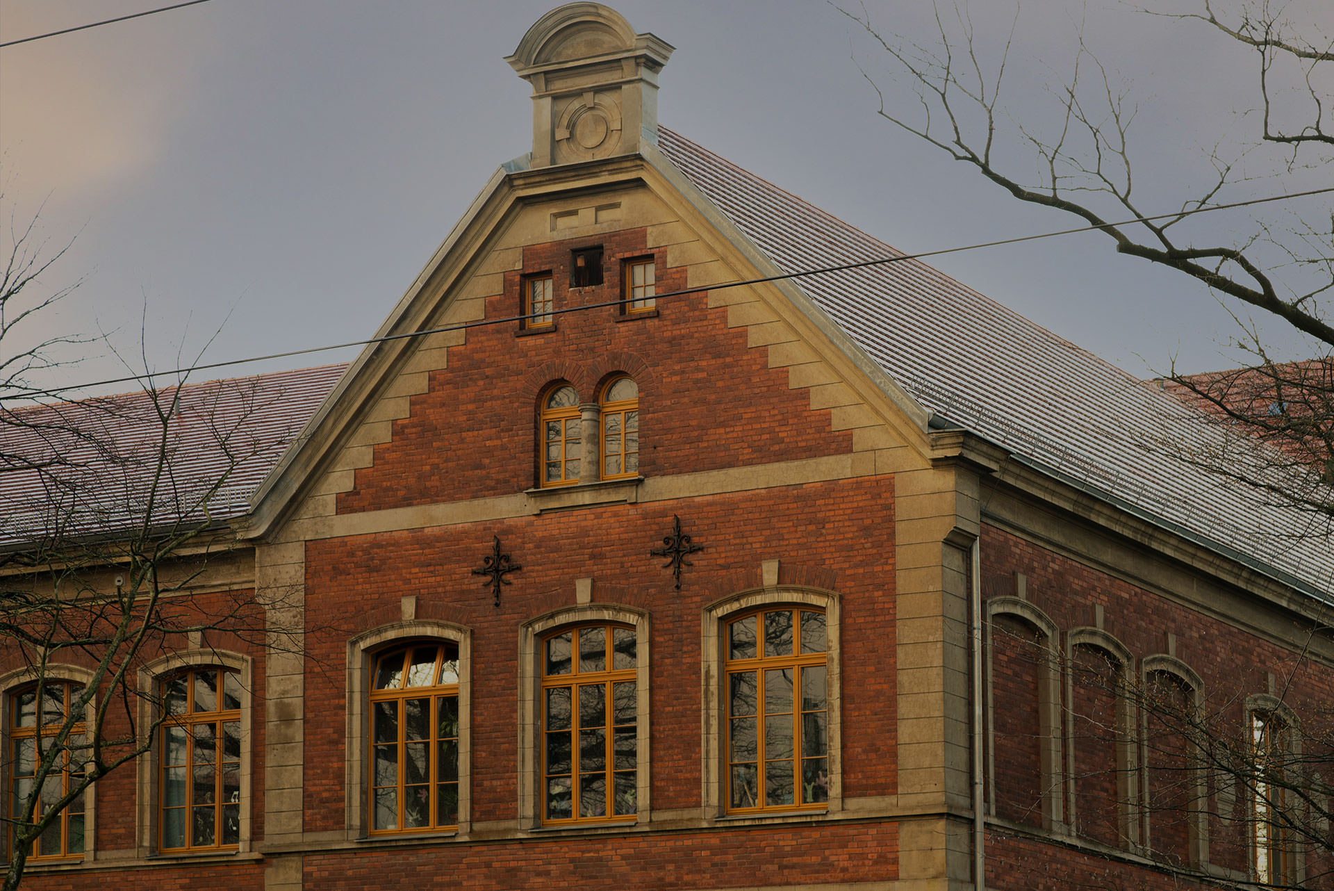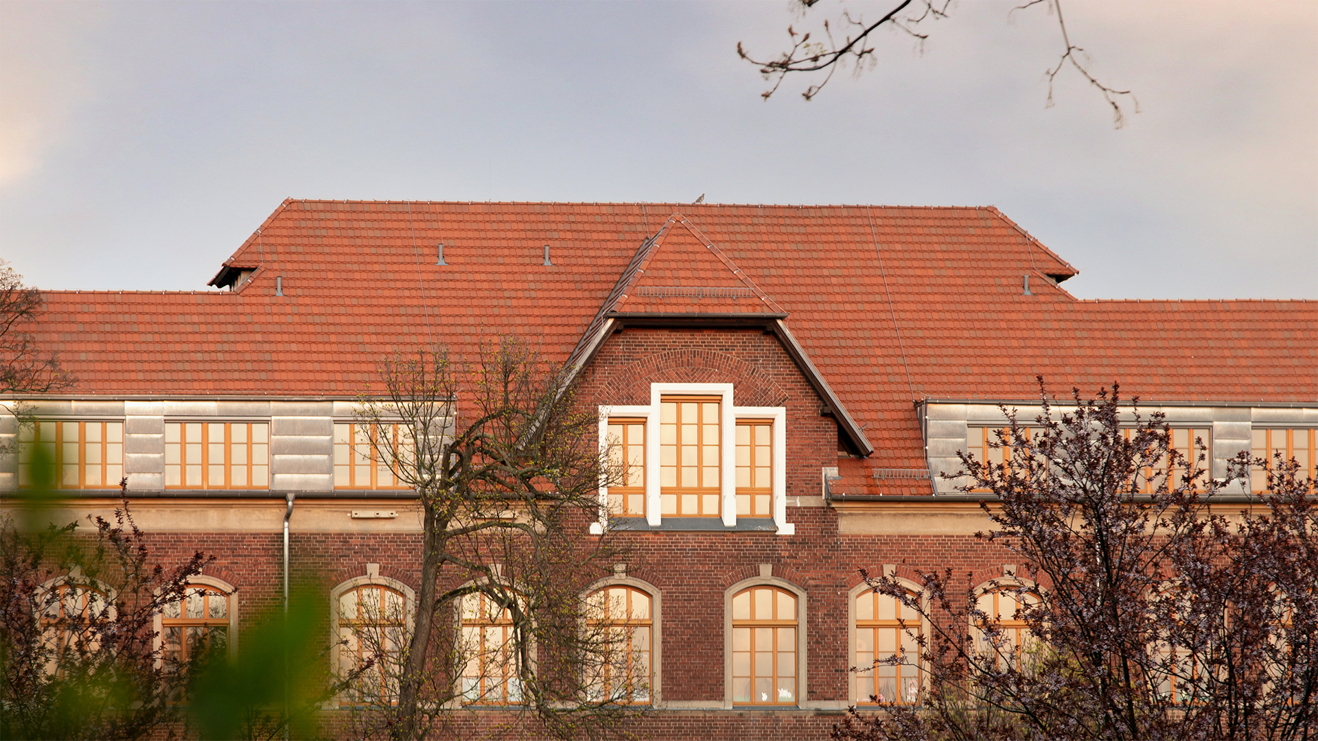 Wir haben das Dach des imposanten Backsteinbaus mit einer Biberschwanz-Kronendeckung in rot engobierten Biberschwanzziegeln eingedeckt. So schön kann Schule sein.